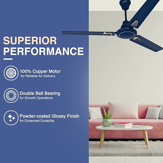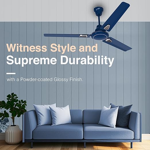 V-Guard Windle Deco AS Modern Ceiling Fan For Home | High Speed 100% Copper Motor | Exquisite Detailing For Elevated Charm | Powder-Coated Glossy Finish | Admiral Blue| 1.2 meters