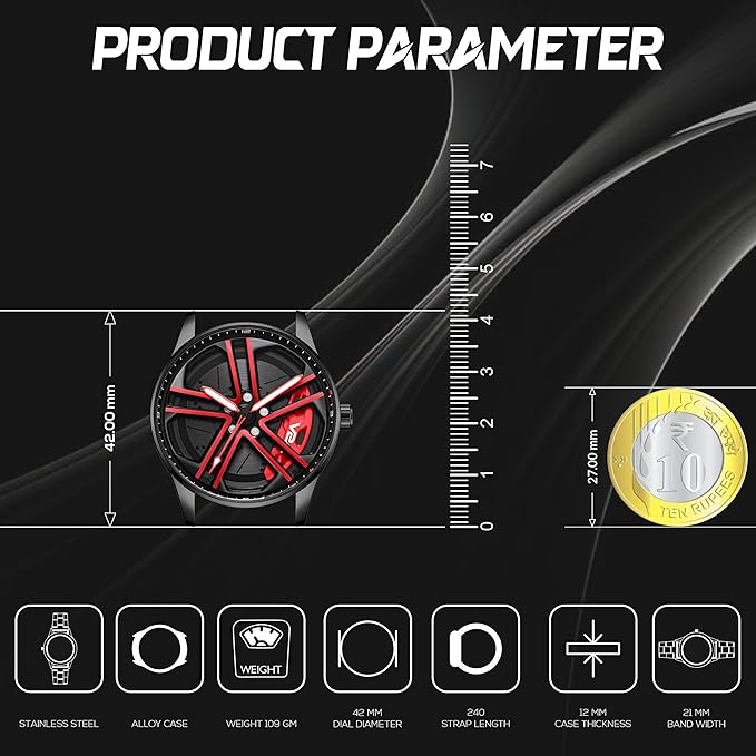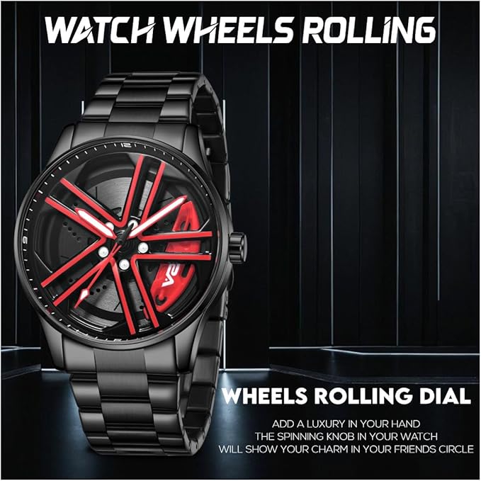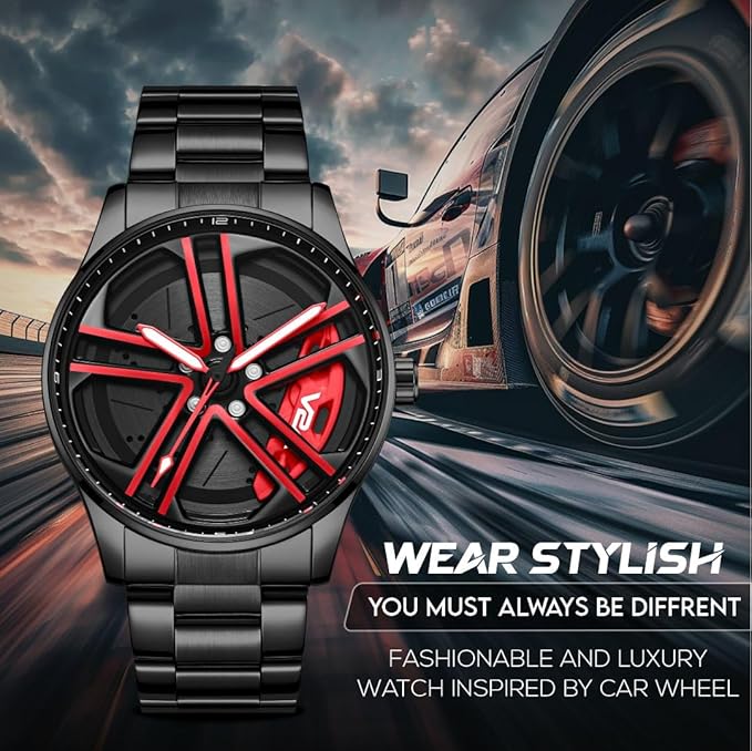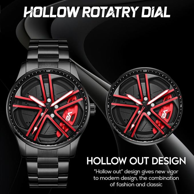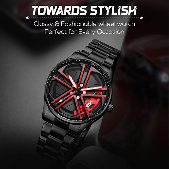 V2A Vortex-2 Wheel Series Men’s Analog Watch Open Dial Blue Watch – Car Wheel-Inspired Design, Hollow Out Elegance Casual Stainless Steel Watch for Men | Gift for Men
