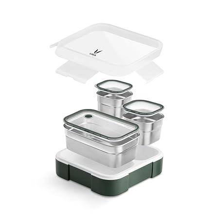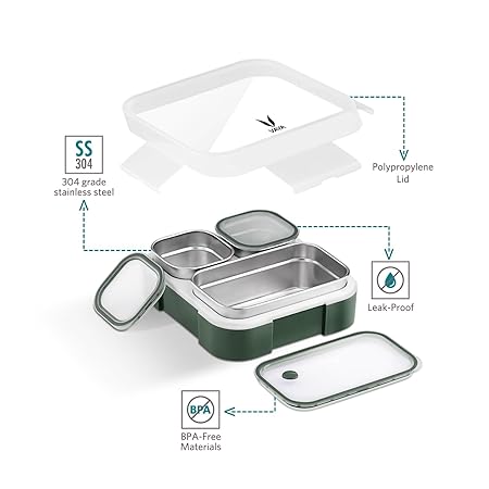 Perfect Lunch Box for Office goers, School Kids & College Students: These distinctive, tight, and spill-proof containers keep your food fresh and crisp for hours. The containers feature airtight lids that prevent moisture from spoiling your cooked meals. These lids are also leak-proof, ensuring that even semi-liquid foods remain securely contained.