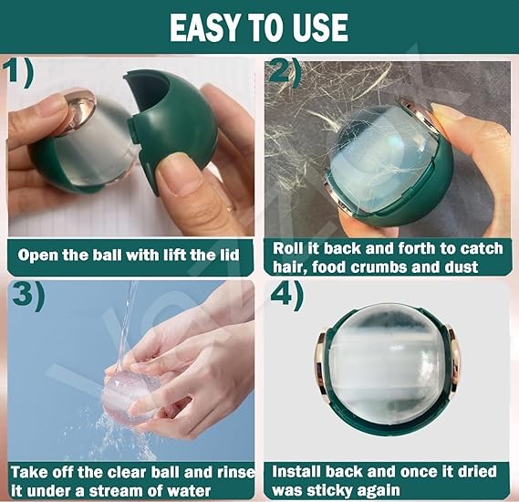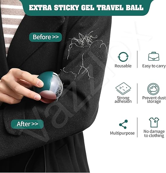 EFFICIENT & PRACTICAL: The sticky roller ball can easily removes lint, dust, pet hair and snack crumbs from clothes, furniture, sofas, car seat, sheets and carpets. Because of its special material and strong stickiness, lint remover ball can easily removes hair and snacks without damaging any clothes.