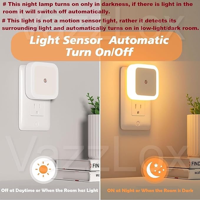 AUTOMATIC ON/OFF LIGHT SENSOR: Equipped with an intelligent light sensor to detect the current ambient / environment light level. This night lamp automatically turns on in low-light / dark environments and turns off in well-lit environments. The brightness of night lights will be different under different lighting environments. The darker the environment, the brighter the nightlight, ensuring you have light when you need it.