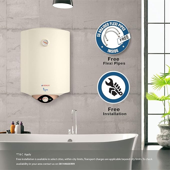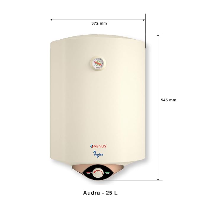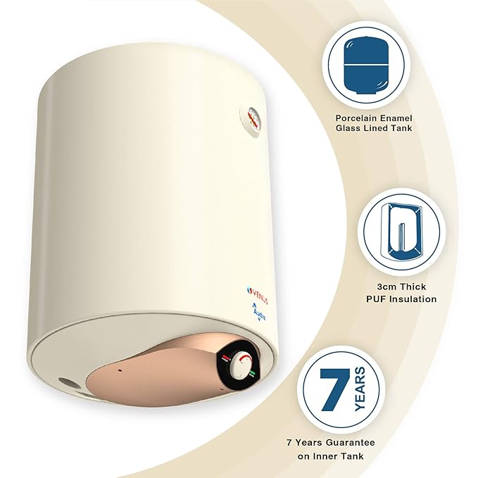VENUS Audra 25AV 25-Litre (Ivory) Water Heater | Porcelain Enamelled Glass Lined Tank | BEE Star Rating – 5 Stars:ISI | Free Flexible Hose | Guarantee -7 Years on Inner Tank.