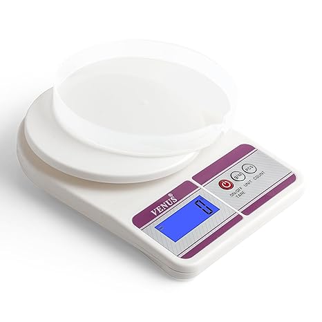 Venus Electronic Digital Kitchen Weighing Scale, Food Weight Machine For Home, Baking, Health 10 Kg With 2 Years Warranty And Battries Included, Silver