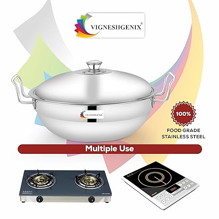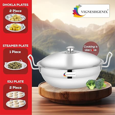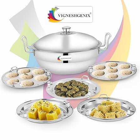 VIGNESHGENIX Stainless Steel idli Maker Induction triply Base Idly Cooker Multi Kadai idly Steamer dhokla Cooker | All-in-One Big Size with 5 Plate | 2 idli | 2 Dhokla | 1 Patra