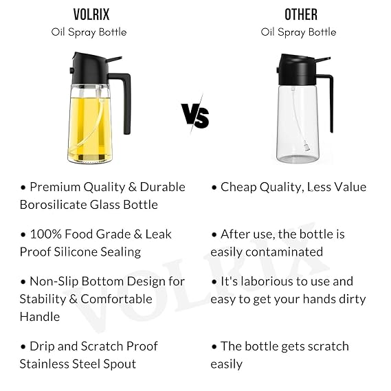 VOLRIX Oil Spray Bottle for Cooking, Premium Glass 2 in 1 Oil Dispenser for Kitchen, Food Grade Oil Sprayer Containers with Nozzle, Oil Bottle for Air Fryer, Roasting and Frying 500 ML (Multicolour)