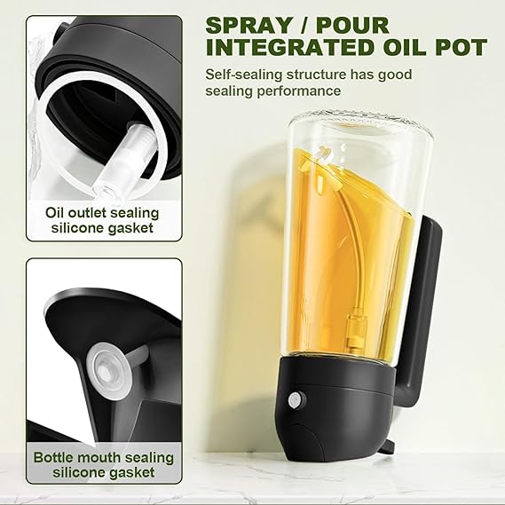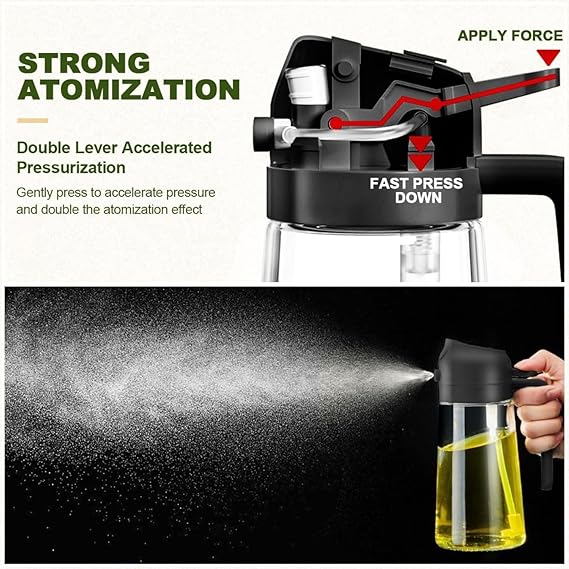 Dual-Function Design & Multi-Purpose: 2 in 1 Olive Oil spray bottle for cooking offers the convenience of both spraying and pouring oil, suitable for a wide range of food preparation processes such as salad dressing, griddle, roasting, grilling, baking.