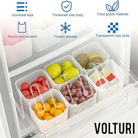 Efficient Fridge Organizer: VOLTURI fridge containers offer an efficient solution for organizing your fridge. With these containers, finding what you need is a breeze, eliminating the hassle of rummaging through cluttered shelves. Sized at 11.8cm in length, 9.8cm in width, and 12.5cm in height, these containers are optimally designed for effective fridge organization.