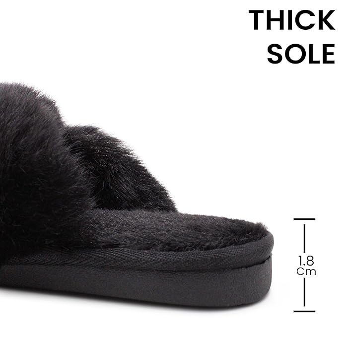 VRITRAZ Super Soft Cross Fur Design Comfortable | Anti Skid | Lightweight Winter Slipper For Girls and Womens, Warm House Chappal