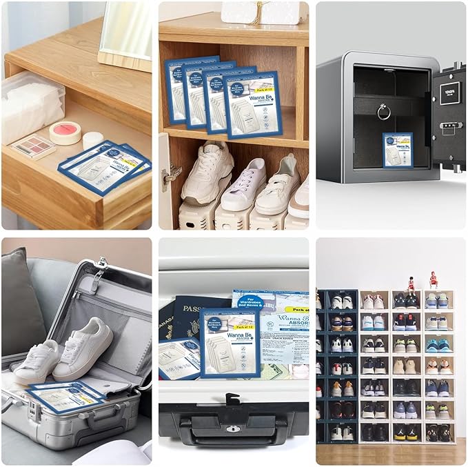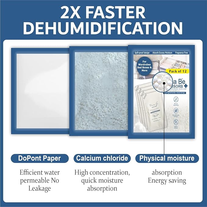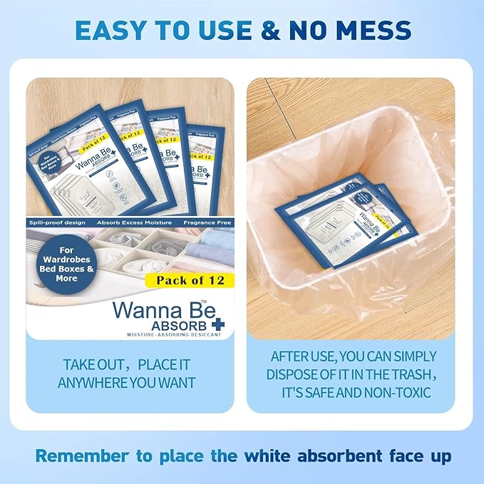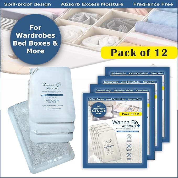 Wanna Be Moisture Absorber | Wanna Be Absorb Plus (100 gms X 12 boxes)- Season Pack of 12 | Absorption Capacity 200ml Each | Dehumidier for Wardrobe | Fights Against Moisture, Mould, & Musty smells