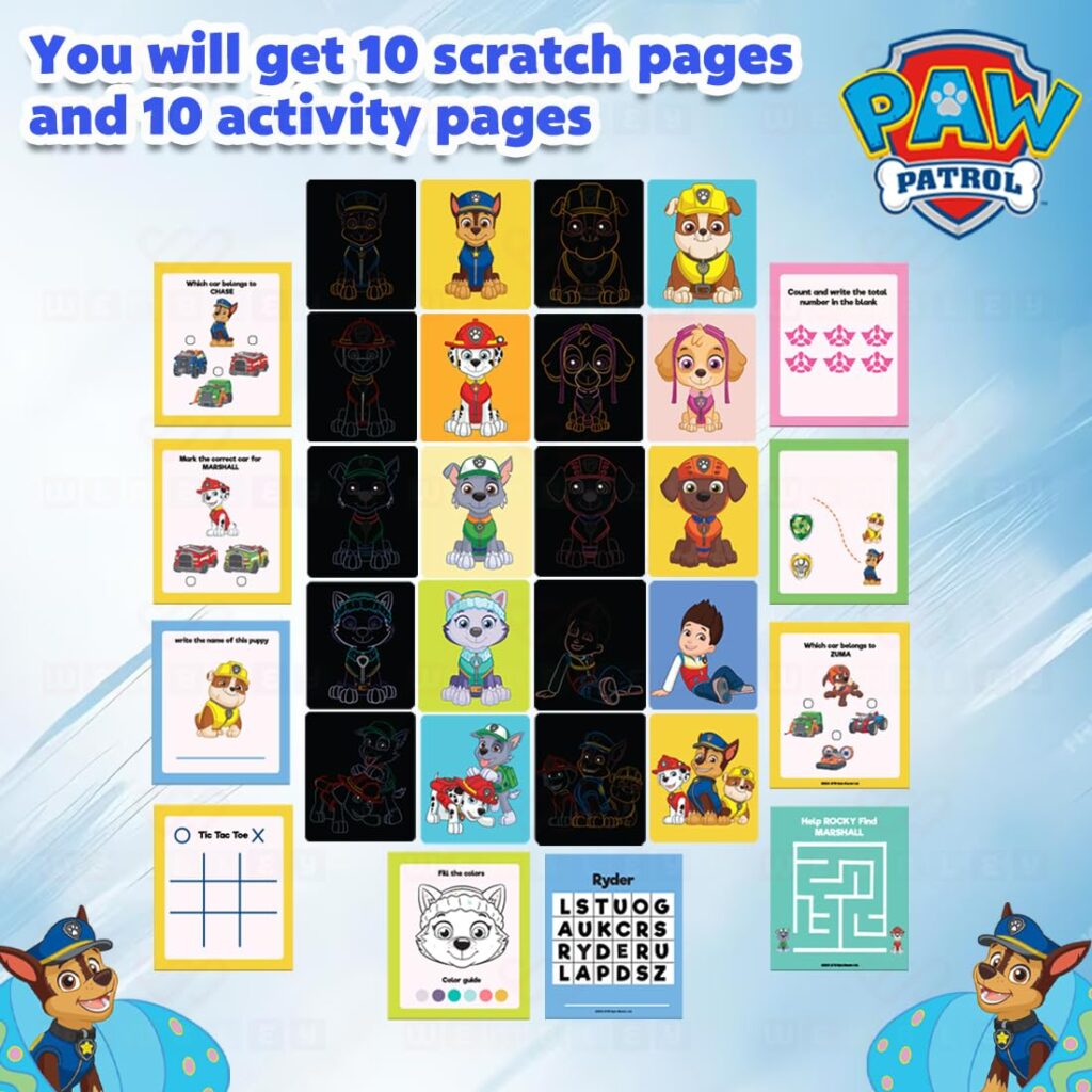 Wembley Paw Patrol Scratch Art Book Notepad with All-in-One Activity Quiz Magical Scratch Pad DIY Book with Pen Gift for Boys Girls Ages 4 5 6 7 8 9 Colorful Creative Doodle Scribble Book