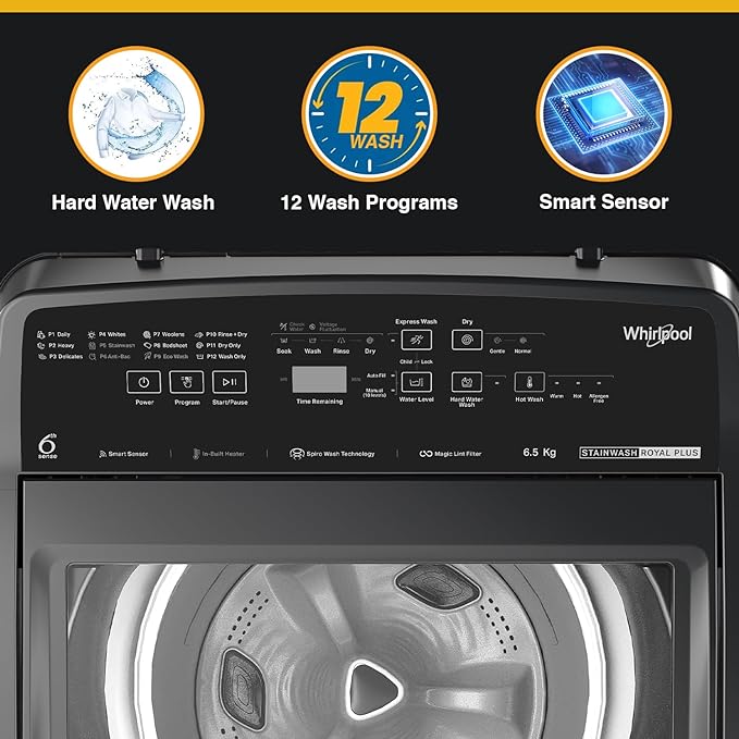 Whirlpool 6.5 Kg 5 Star StainWash Royal Plus Fully Automatic Top Load Washing Machine (SW ROYAL PLUS 6.5 (H) GREY 10YMW with In-Built Heater)