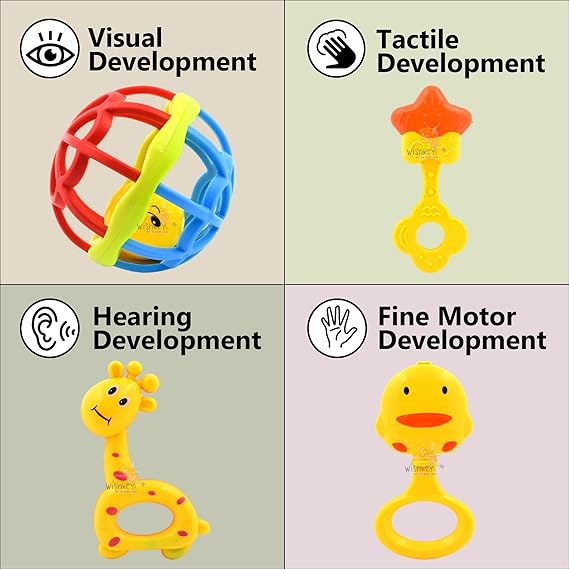 EARLY EDUCATION INFANT TOYS: When kids just begin to grasp things on purpose, shaking, pulling, rotating or on to teething.It contains 8 Rattles.