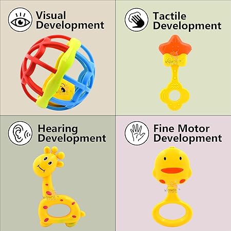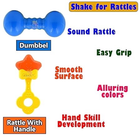 EARLY EDUCATION INFANT TOYS: When kids just begin to grasp things on purpose, shaking, pulling, rotating or on to teething.It contains 8 Rattles.