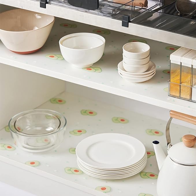 Wolpin Anti-Slip Kitchen Cabinet Drawer Shelf Mat Liner Sheets (45 cm x 2 M Roll) Waterproof Strong Table Mat EVA for Bathroom, Fridge Mat Textured Multipurpose (Avocado Print), Ethylene Vinyl Acetate