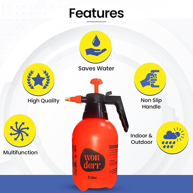 WONDERR Pressure Spray Pump for Plants(2.0L)|Gardening Water Pump Sprayer for Home Garden|Spray Bottles for Garden Plants and Lawn,Multicolor