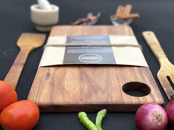 Wood Chop Single Piece Solid Acacia Wood Chopping/Cutting Board | Reversible | Anti-Bacterial | No Varnish or Dyes used (15 x 8 x 0.5 Inches, Acacia Medium) with 1 Year Warranty