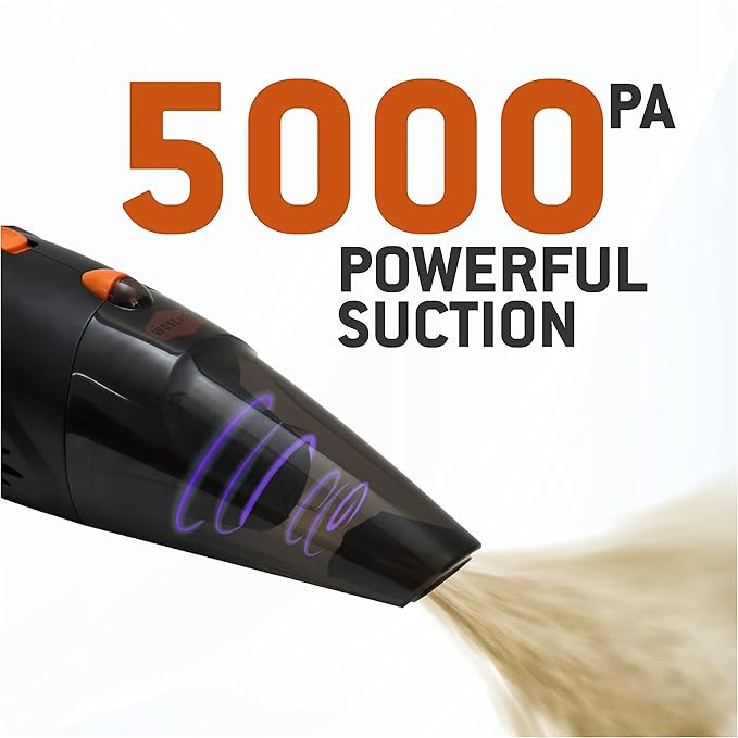 POWERFUL & EFFECTIVE CLEANING: Equipped with a 140-watt motor and an independently sealed metal fan, this portable car vacuum can clean your entire vehicle from all the accumulated dust, pet hair, debris, etc. It delivers strong 3500PA suction power to clean the difficulty to reach areas of your vehicle effectively