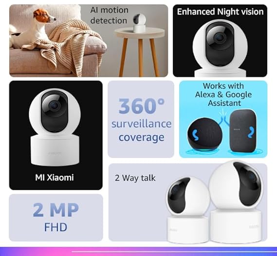 Xiaomi Mi Wireless Home Security Camera 2i | Full HD Picture | 360 View | 2MP CCTV | AI Powered Motion Detection | Enhanced Night Vision| Talk Back Feature (2 Way Calling), 1080p, White