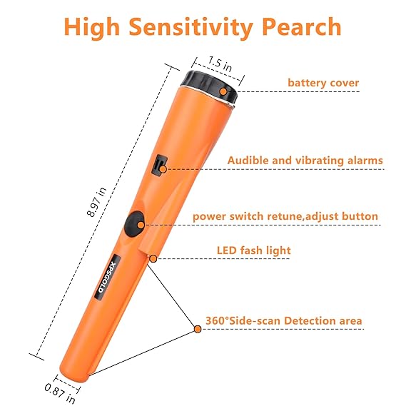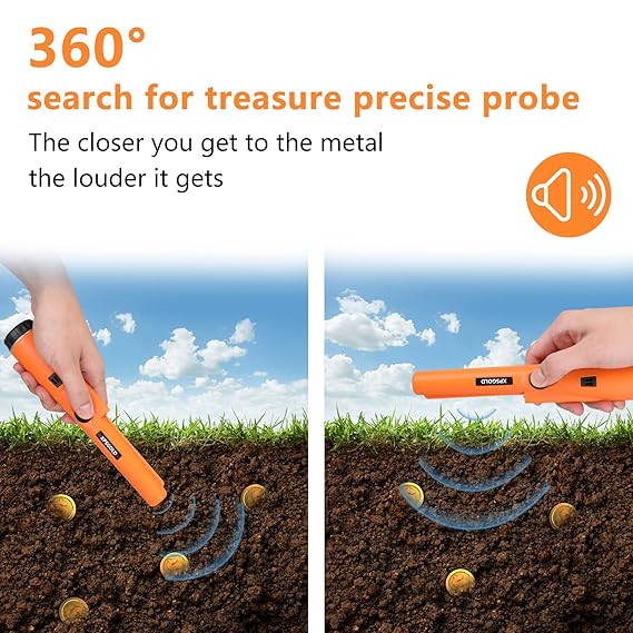 XPSGOLD Metal Detector Pinpointing,Waterproof Pinpointer 360 Degree Search Gold&Treasure Finder with Belt Holster &LED Indicator& Buzzer Vibration, for Adults and Kids (Orange)