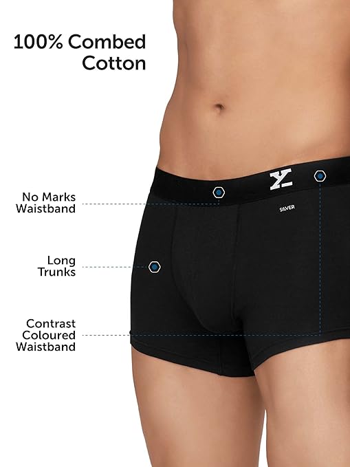 XYXX Men’s Aero Super Combed Cotton Regular Fit Solid Antimicrobial Trunks with No Marks Waistband (Pack of 2)