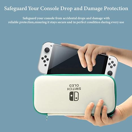 Hard Case to Protect & Organize: The hard EVA shell ensures the safety of the switch OLED and prevents accidental collision, scratch and falling. Soft flocked lining provides a comfortable home for your switch. Thanks to the top layer, extra storage net, players can store cables, headphones, cards, phones, etc.