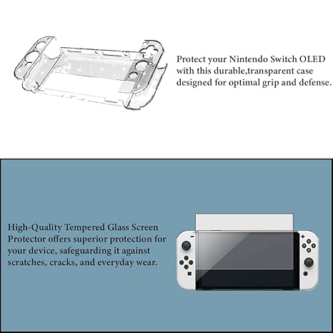 1 Screen Protector & 4 Thumb Grip: Made of 9H tempered glass, the screen protector for Nintendo OLED is 99.9% HD clear transparency. The tempered film is sensitive, anti-scratch and quite easy to install. 4 Pieces (2 Pair) of thumb grips enhance players ‘ gaming experience and operating accuracy.