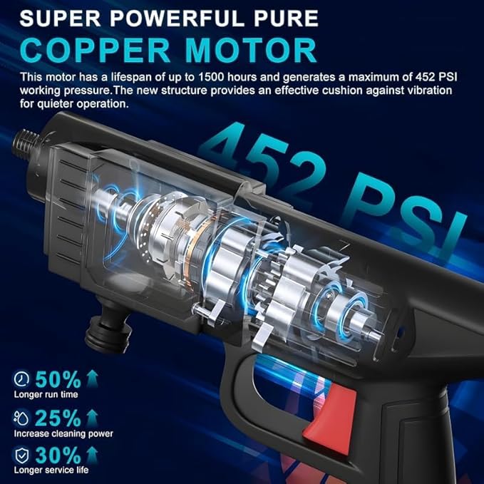 YOGIMOONI Cordless Portable Wireless Pressure Washer Gun 48V 12000mah High Pressure Water Gun for Car Wash Bike Washing Cleaning| Adjustable Nozzle and 5M Hose Pipe (Double_BETTERY)