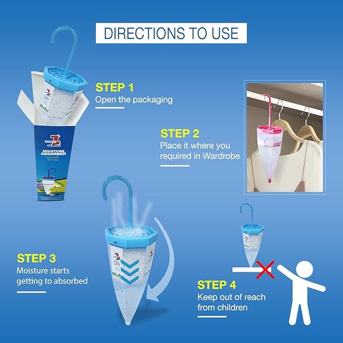ZORBIT Umbrella Shape Moisture Absorber Dehumidifier for wardrobrs, bathroom, kitchen and Bedroom| Fights Against Moisture, Mould, Fungus Lavender Fragrance (Pack of 3)